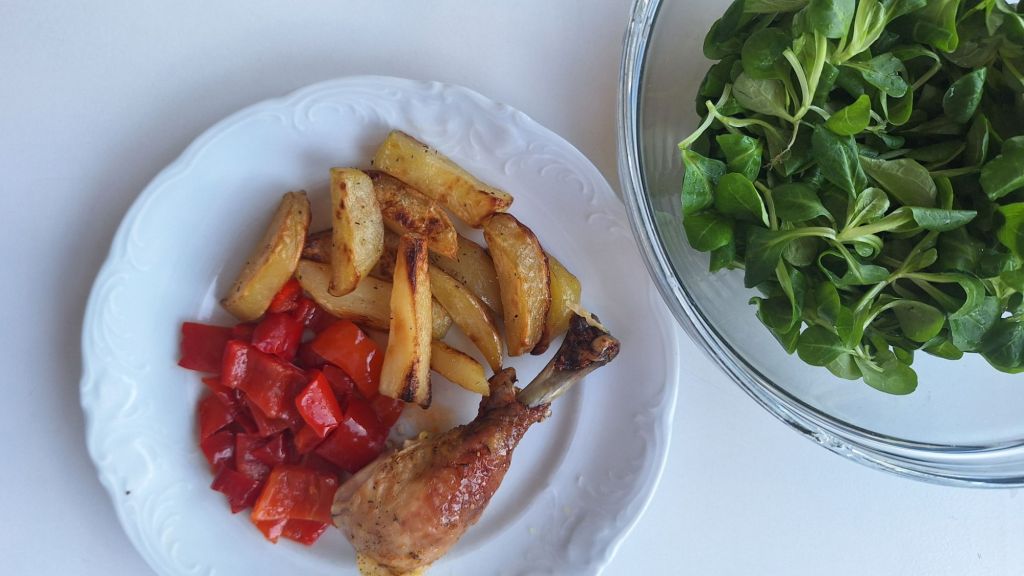 LCHF: peÄŤen sir, praĹľena zelenjava, svinjski zrezek