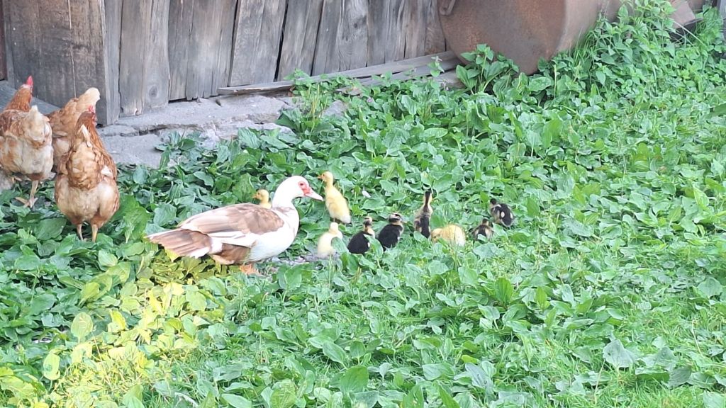 Doma smo na vrtu pleli in pobirali prve pridelke. Posadili se nekaj paradižnikov, malancane, bučk in kumare. Posejali sem še por, še enkrat berivko in blitvo. Je pa naša mama račka pripeljala še svoj zarod in gnezda.