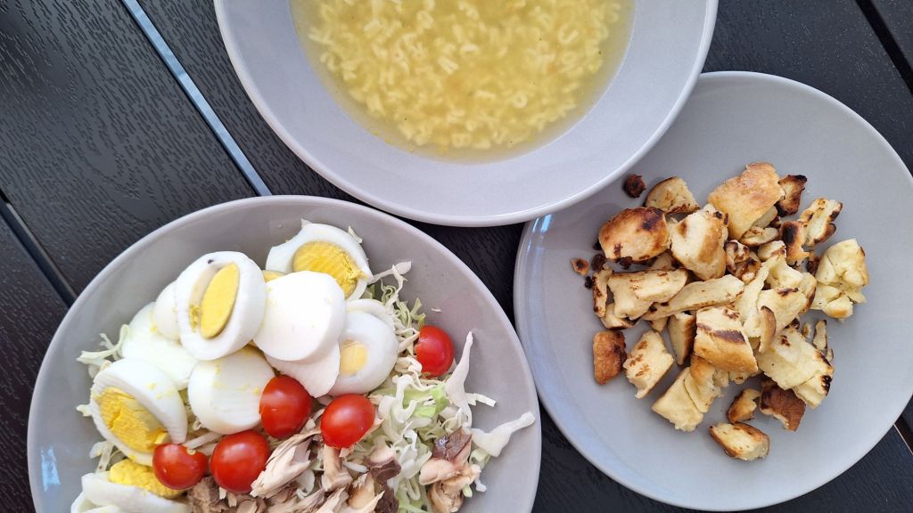 LCHF: solata (zelje, jajčka, skuša, paradižnik)