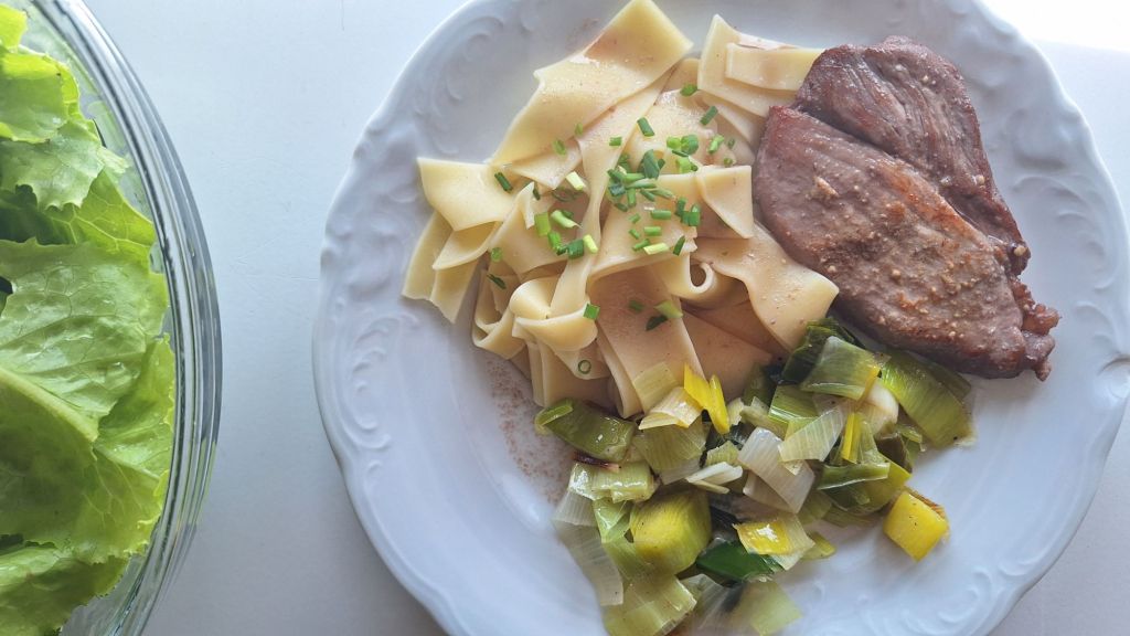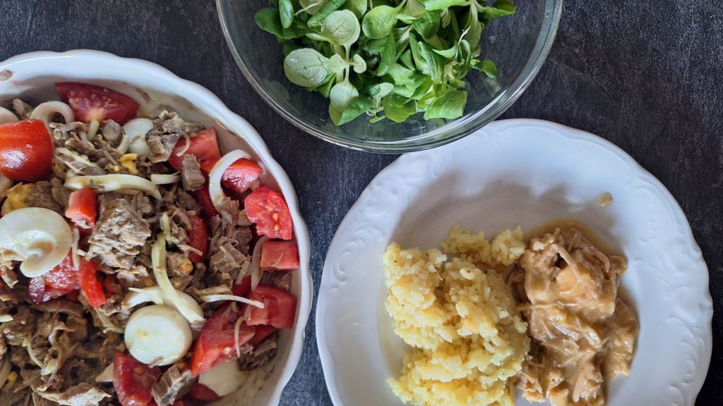 LCHF: “jesih flajš” govedina iz juhe, jajce, paradiĹľnik, ÄŤebula v solati
