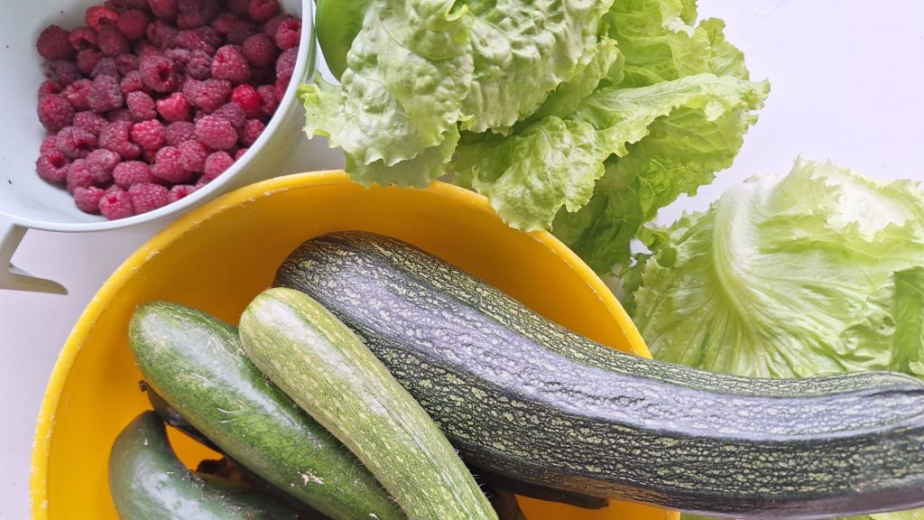Topla jesen je na vrtu spodbudila Å”e zadnje buÄke in kumare. Nabrala sem tudi maline in skuhala malinino marmelado. Skuhala sem tudi kolerabico in jo porcijo zamrznila.
