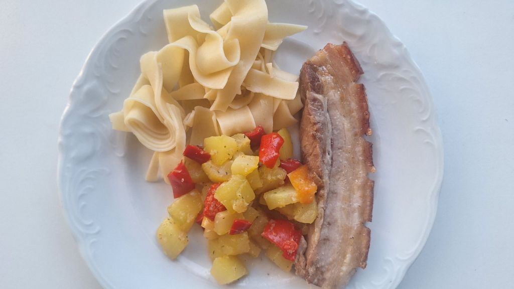 Na vrtu in v rastlinjaku smo nabrali še por, paradižnik in papriko. V gozdu pa nekaj lisičk in jurčka, ki smo jih pojedli v nedeljo po prihodu iz Krvavca.