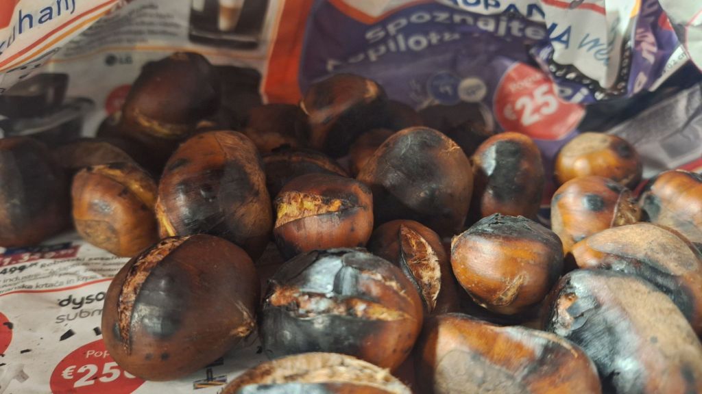 V soboto sva šla z Matejem v Grosuplje na sejem malih živali ter v trgovino. Zvečer pa smo s svakinjo pekli kostanj.