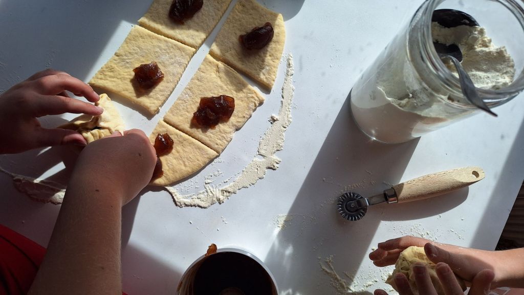 V nedeljo sva z Matejem pospravila domačo teletino, ki smo jo kupili. Za nedeljsko sladico smo naredili buhteljne. Popoldne pa smo šli na sprehod po jesenskem soncu
