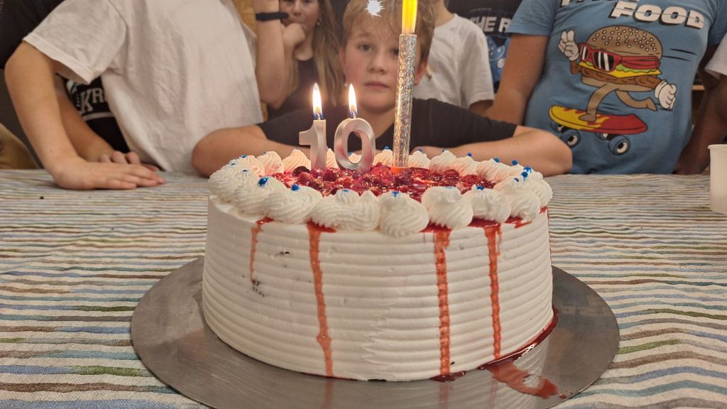 Zadnji teden pred krompirjevimi počitnicami smo bili v pripravah na praznovanje Jurijevega 10.rojstnega dne. Rojstni dan je imel že poleti, a nekako se nam je praznovanje z njegovimi prijatelji zavleklo v jesen. Smo mu pa pripravili presenečenje in povabili njegovega prijatelja iz Ljubljane, s katerim se nista videla že zelo dolgo. Po praznovanju pa je šel z njim v Ljubljano.