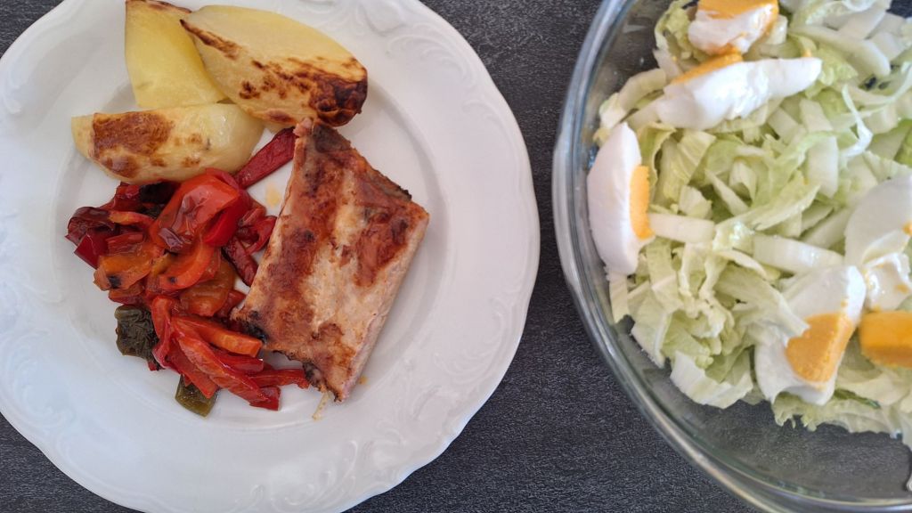 LCHF: govedina iz juhe v solati (paradižnik, jajce, Äebula)