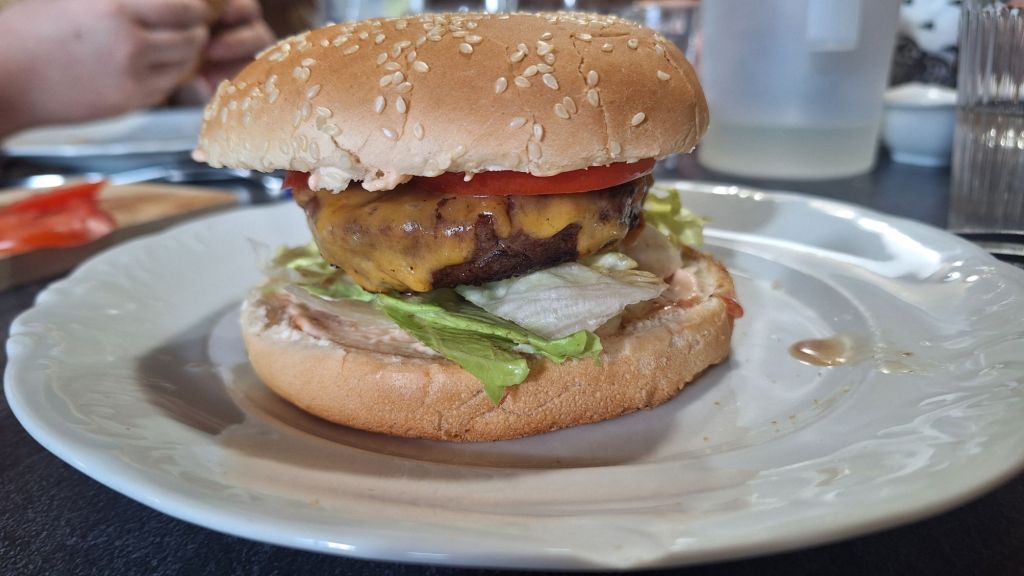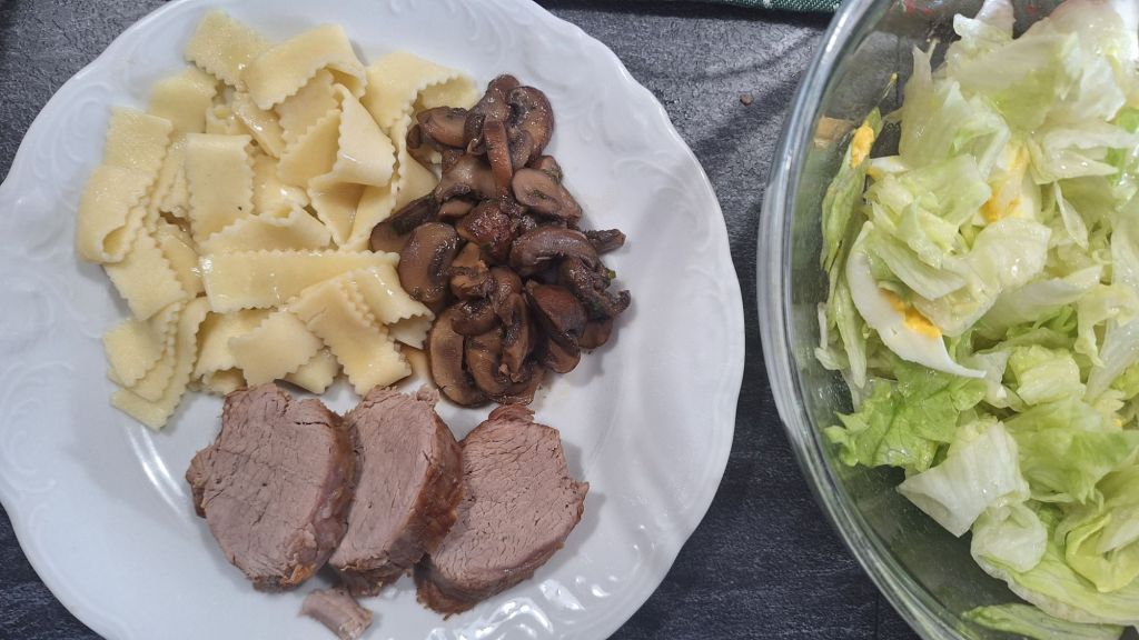 LCHF: goveji polpeti s chedar sirom in jajÄkom, rukola, paradižnik