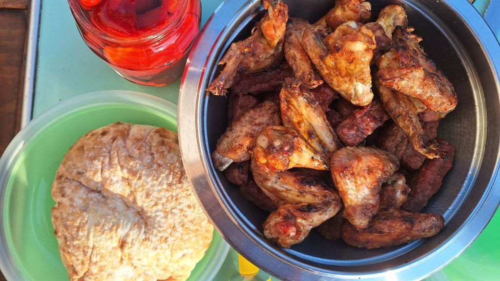 Mrzla jutra in prijetno topli dnevi. Mi počasi urejamo okolico hiše, zato smo tudi to soboto zakurili žar in jedli na sončku.