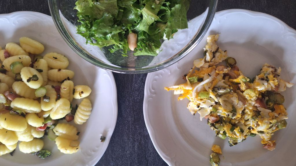 LCHF: umešana jajčka s slanino in šparglji