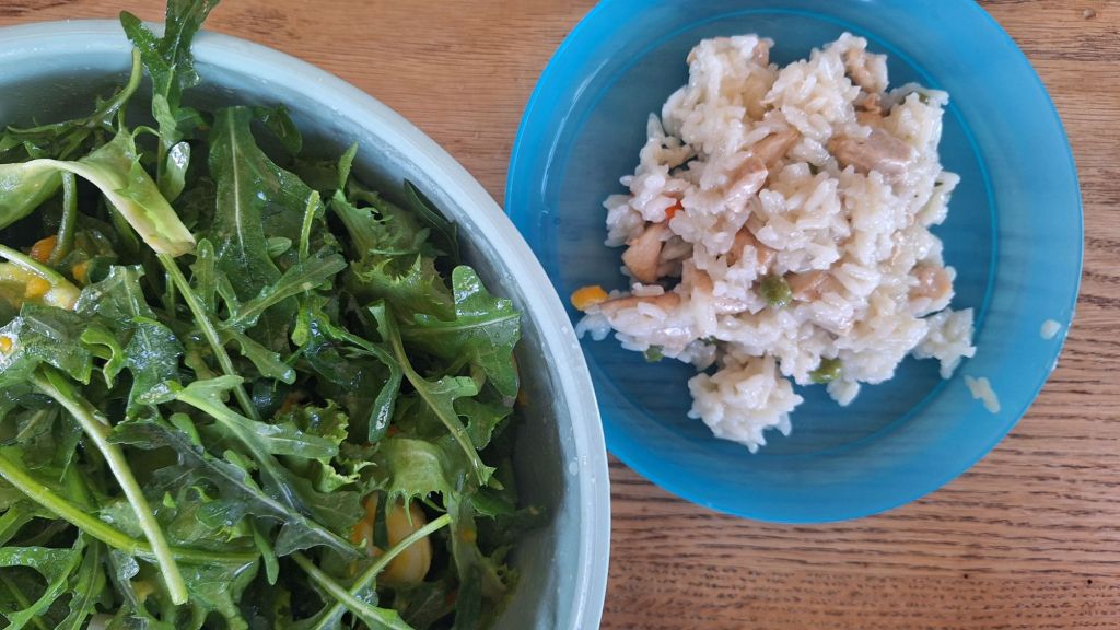 LCHF: Endivja z rukolo, piščančji koščki