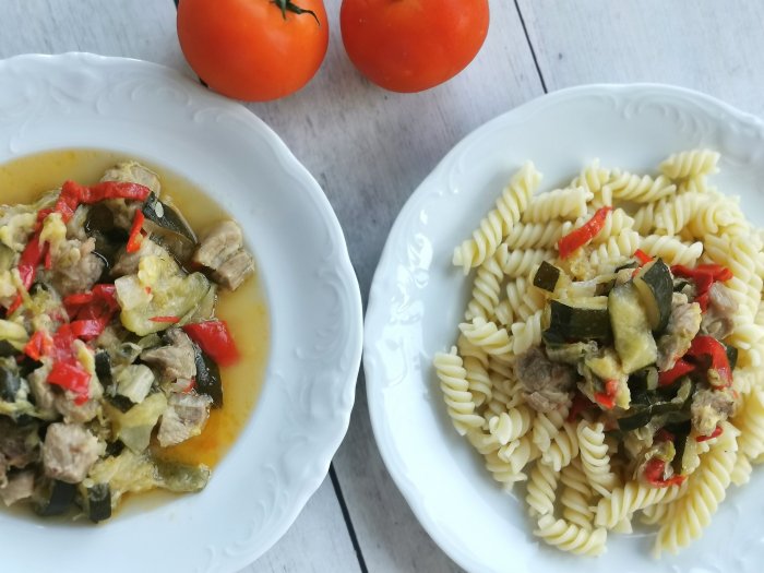 Najboljše je, kar je preprosto in dobro. Pa še hladilnik pospravimo. Potrebujemo (za 4 lačne): 500 g mesa (vseeno katerega) 1 velika bučka 1 rdeča paprika1 zelena paprika1 manjši malancanKitajsko zelje 1 velika čebula5 zrnov česnaZačimbe Priprava: Olupimo in narežemo čebulo in jo na maščobi rahlo prepražimo, dodamo nasekljan česen in na kocke narezano meso. … Nadaljuj z branjem Poletna omaka