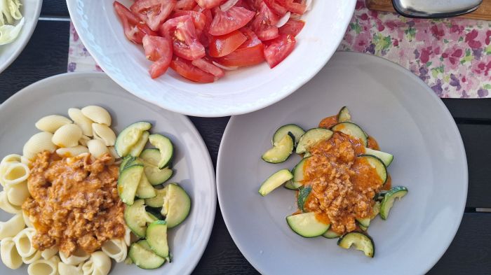 Pred vami so naša kosila, ki smo jih jedli drugi teden našega dopusta. Naše počitnice opisujem na instagramu in v blog objavi. TEDENSKI JEDILNIK PONEDELJEK (po naročilu) Hamburgerji LCHF: solatni krožnik z mocarelo TOREK Pire krompir Pohani piščančji zrezki Mešana solata LCHF: solata (ledenka, paradižnik, kumare, jajca, sir v slanici) SREDA Pečen krompir Pečene bučke … Nadaljuj z branjem 🍽 Tedenski jedilnik, 30. teden, 2024