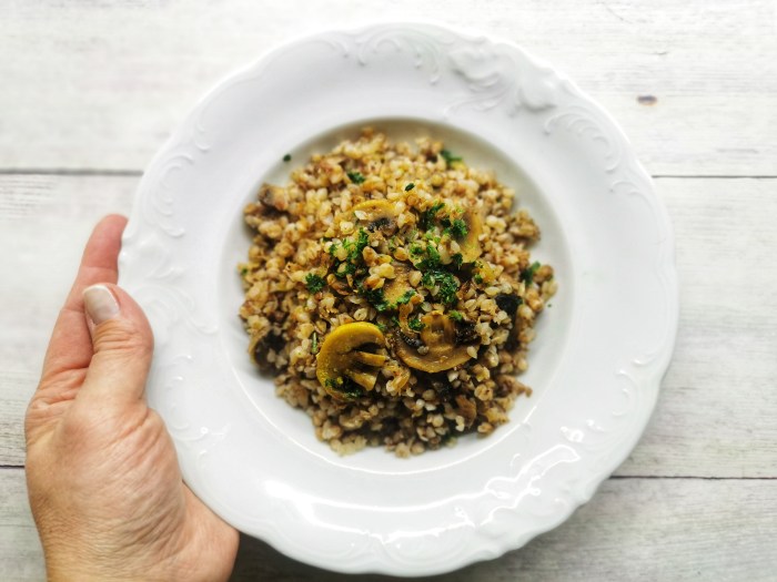 Preprosta in zelo okusna jed. Potrebujemo (za 3 osebe): 1 skodelica ajdove kašeJušna osnova1 manjša čebula3 zrne česna250 g svežih (ali zmrzjenih) gob (šampinjoni, jurčki, lisičke,... ) Peteršilj, rožmarin Postopek: V kozici na malo maščobe prepražimo ajdo in zalijemo s tremi skodelica mi jušne osnove. Medtem ko se kuha pripravimo gobice, če imamo zmrznjene jih … Nadaljuj z branjem Ajdova kaša z gobami