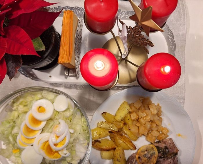 Božični teden. Teden druženja, teden objemov in obiskov. Na božični večer smo postavili smrečico, jaslice. Na božič šli k Matejevi sestri na potičko. 26.sem se dobila z mojimi puncami na tradicionalnem druženju. Za vikend smo šli na Štajersko. Najprej k mojemu bratu, pa nato k očetu, kjer smo prespali in šli na ogled Božičnega Vojnika. … Nadaljuj z branjem 🍽 Tedenski jedilnik, 52. teden, 2024